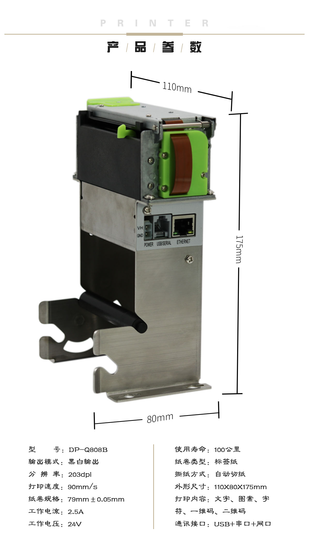 DP-Q808P嵌入式小票打印机自动切纸终端机